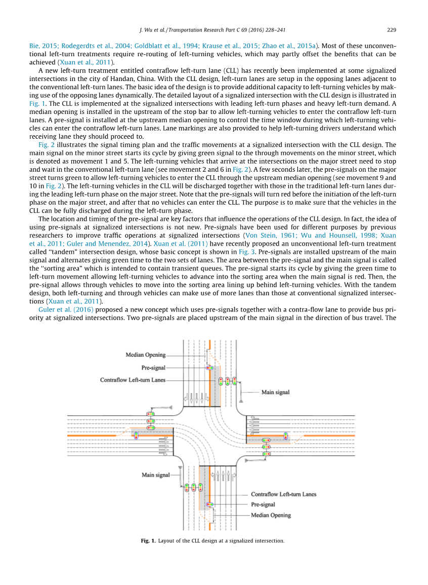 尽管已经对CLL设计的操作和安全性能进行了一些研究,但仍有研究空白需要解决。与以前的研究所考虑的前置信号和主信号的定时需要以一致的方式考虑的情况不同,CLL设计概念中的前置信号的定时不会影响主信号的定时。在交叉路口开始绿灯时间后,前置信号变为绿色,在主要街道开始左转阶段之前变为红灯。这样做的目的是确保CLL中的车辆在左转阶段可以完全放电。在这种情况下,最关键的问题是如何优化预信号的时间和位置,以便考虑到左转车辆的随机到达,CLL的使用可以最大以前的研究没有解决这个问题。