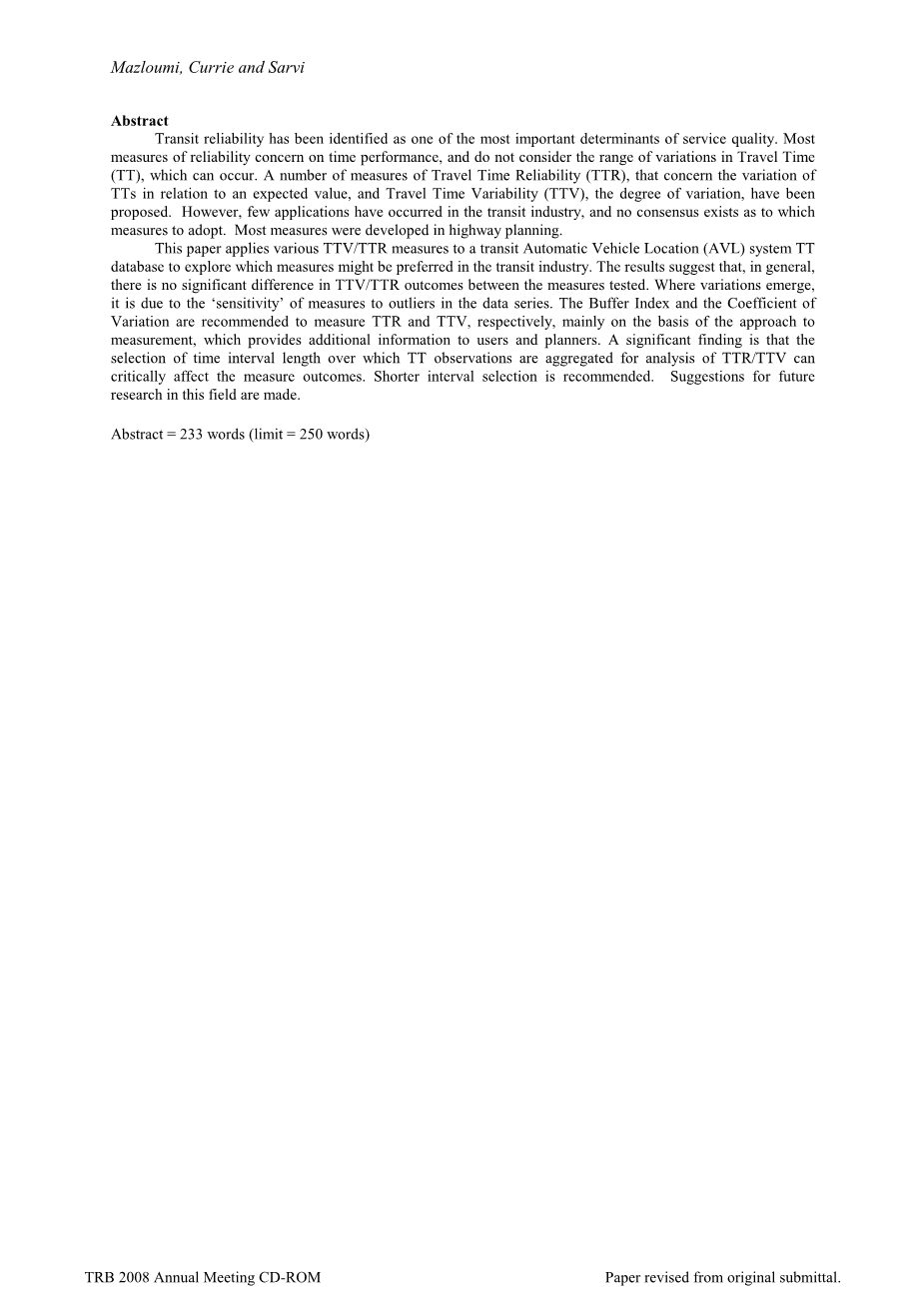 Majid Sarvi,澳大利亚维多利亚州克莱顿市莫纳什大学60楼土木工程系运输研究所讲师,澳大利亚电话: 61 3 9905 9696,传真: 61 3 9905 4944,电子邮件:majid.sarvi@eng.monash.edu.au
