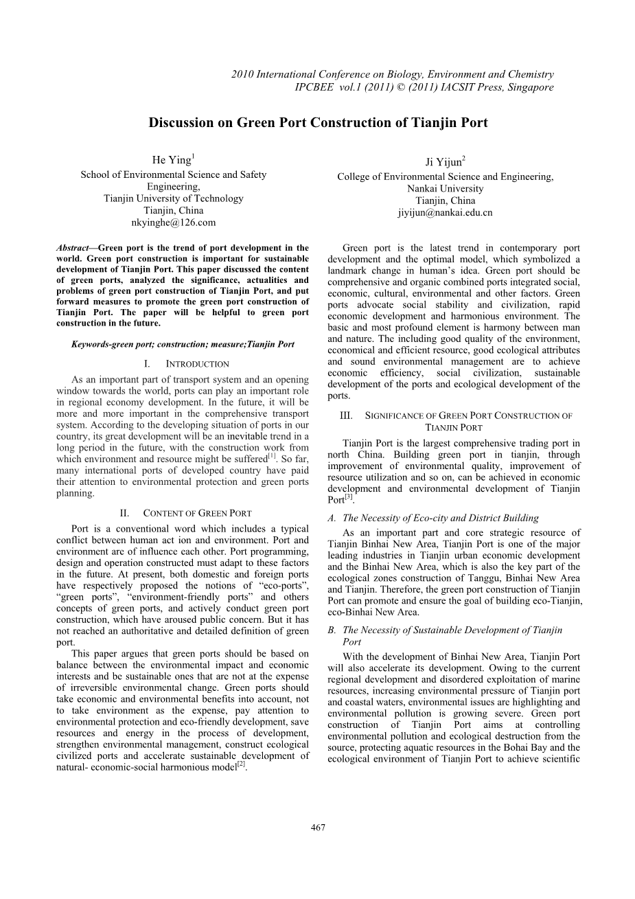 众所周知,绿色港口是国际港口发展的趋势,将加速中国的可持续发展和生态文明建设。 然而,关于中国绿色港口规划和发展的研究很少。该文章有助于实现天津港节约,清洁,安全,可持续发展,帮助实现中国其他港口绿色港口发展。