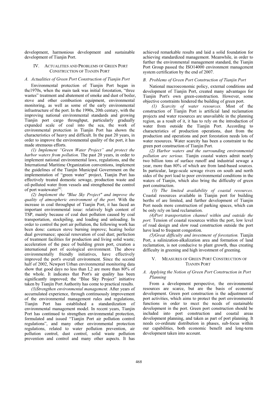 从发展的角度看,环境资源稀缺,但这是经济发展的基础。绿色港口建设是港口活动的调整,旨在保护港口环境功能,以适应港口可持续发展的需要。绿色港口建设应纳入港口建设和沿海地区发展规划,并作为港口规划的一部分。 它需要分阶段进行协调分配,在我们的能力范围内进行分重点考虑,同时考虑到经济利益和长期发展。