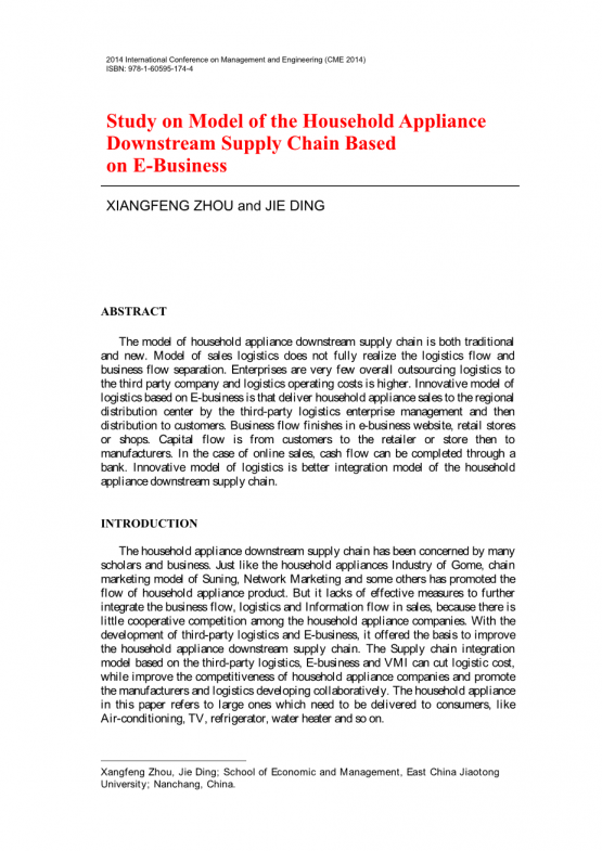 一直以来,家电下游供应链受到越来越多学者和企业的关注。就像国美家电行业,苏宁的连锁营销模式,网络营销等一样,这些推动了家电产品的流动。但由于家电企业之间几乎没有合作竞争,因此缺乏有效的措施来进一步整合业务流程,物流和信息流的销售。随着第三方物流和电子商务的发展,它为改善家电下游供应链提供了一定基础。基于第三方物流,电子商务和VMI(供应商管理库存)的供应链集成模型可以降低物流成本,同时提高家电企业的竞争力,有力的促进制造商和物流协同发展。本篇文章中的家用电器是指需要交付给消费者的大型家用电器,比如空调,电视,冰箱,热水器等。