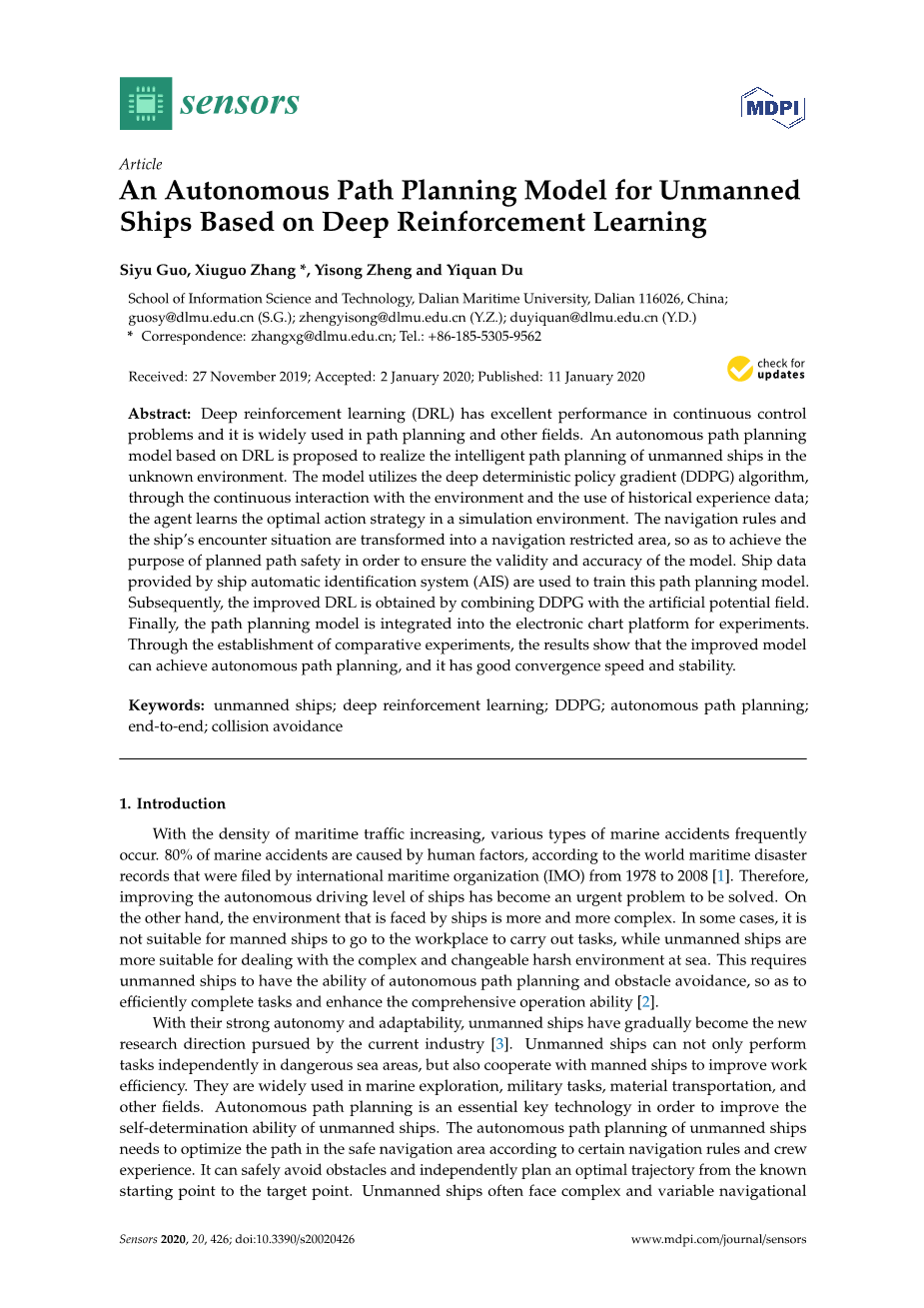 关键词:无人驾驶的船只;深入强化学习;DDPG;自主路径规划;端到端;避碰