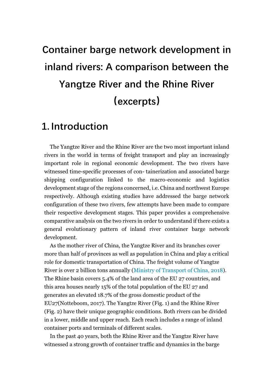 内陆河流集装箱驳船网络的发展:比较长江和莱茵河(摘录)