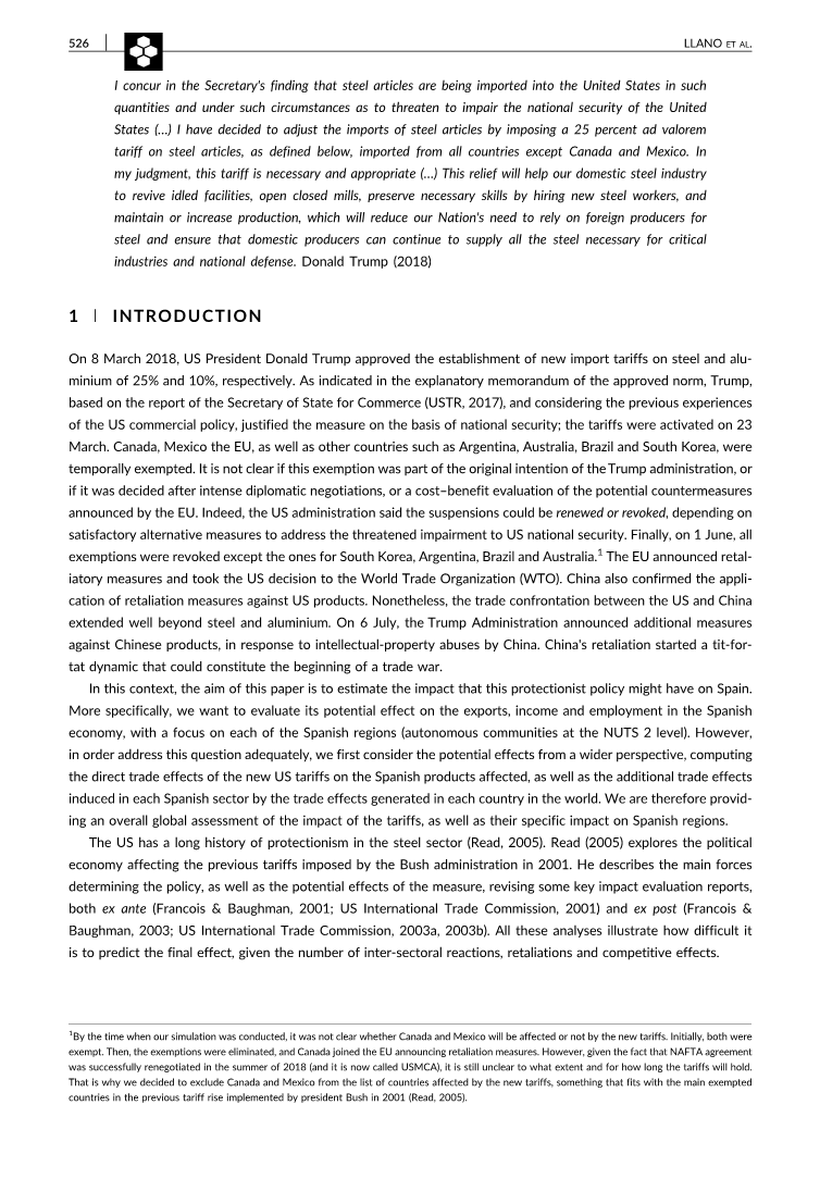 在这种背景下,本文的目的是评估这种保护主义政策可能对西班牙产生的影响。更具体地说,我们要评估其对西班牙经济中的出口、收入和就业的潜在影响,重点放在每个西班牙地区。然而,为了充分解决这一问题,我们首先从更广泛的角度考虑潜在影响,计算美国对受影响的西班牙产品征收新关税的直接贸易影响,以及世界各国产生的贸易影响在西班牙各部门引起的额外贸易影响。因此,我们正在对关税的影响及其对西班牙各地区的具体影响进行全面的全球评估。