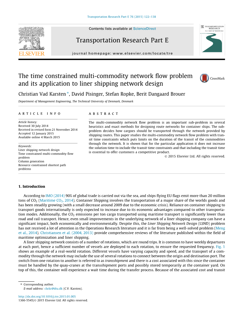 摘要:多商品网络流问题是集装箱船航线网络设计中的一个重要子问题。子问题决定了如何通过航线提供的网络运输货物。研究了具有运输时间约束的多商品网络流问题,该问题限制了商品通过网络的运输时间。结果表明,对于特定的应用,包含运输时间约束并不增加解决问题的时间,而包含运输时间对于向客户提供有竞争力的产品是必不可少的。