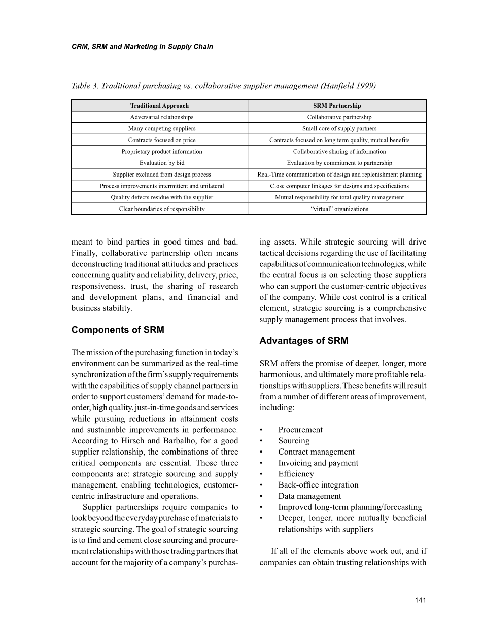 为了获得最大利润,双方(CRM和SRM)必须相互联系并需要整合。