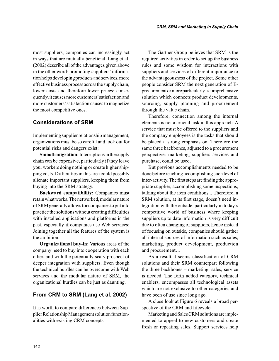 从CRM到SRM(Lang 等2002)