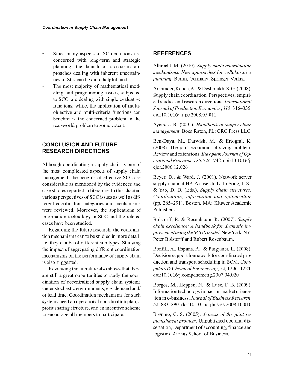 至于未来的研究方向,关于协调机制的研究可以更详细些,即:这种研究可以是不同的子类型。研究聚集不同协同机制对供应链绩效的影响也是可取的。