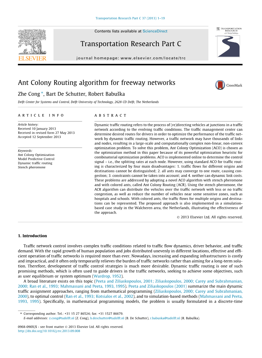关键词:蚁群优化,模型预测控制,动态交通路由,臭味信息素