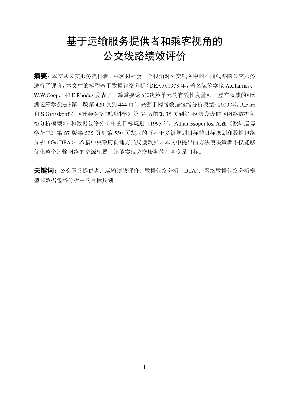 武汉市公共交通系统评价指标体系与评价方法研究外文翻译资料 2022-03-27 19:29:55 英语原文共 26 页,剩余内容已隐藏,支付完成后下载完整资料 英语原文共 20 页,剩余内容已隐藏,支付完成后下载完整资料资料编号:[15108],资料为PDF文档或Word文档,PDF文档可免费转换为Word 原文和译文剩余内容已隐藏,您需要先支付 30元 才能查看原文和译文全部内容!立即支付 发小红书推广免费获取该资料资格。点击链接进入获取推广文案即可: Ai一键组稿 | 降AI率 | 降重复率 | 论文一键排版 PREVIOUS NEXT 您可能感兴趣的文章 基于港口货运需求时间窗的集装箱班轮航线优化设计外文翻译资料 道路和交通基础设施发展和社区对旅游业的支持:感知利益和社区满意度的作用外文翻译资料 基于最优化的行人模型评价标准外文翻译资料 5736|武汉市环境承载能力对城市规模的影响研究外文翻译资料 卡杜纳和阿布贾,尼日利亚北部的车辆交通碳排放量外文翻译资料 韩国高速公路突发事件管理决策支持系统的系统架构外文翻译资料 港口腹地连接:比较研究波兰和比利时的案例外文翻译资料 不断变化环境中的港口装卸外文翻译资料 多式联运运营外文翻译资料 运输景观和列车长度值的成本计算外文翻译资料