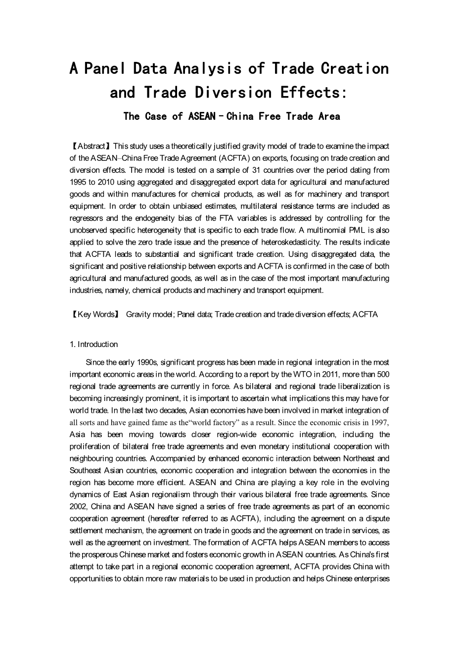 - 中日韩FTA对中国制造业的影响研究外文翻译资料