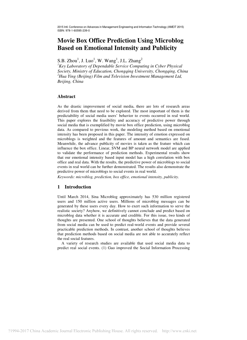 利用微博数据的电影票房预测