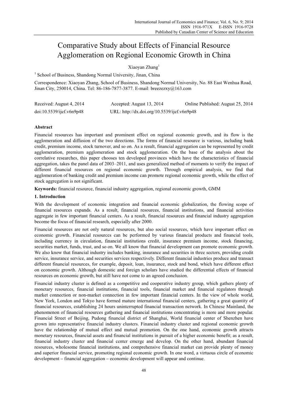 金融资源集聚对中国区域经济增长影响的比较研究外文翻译资料