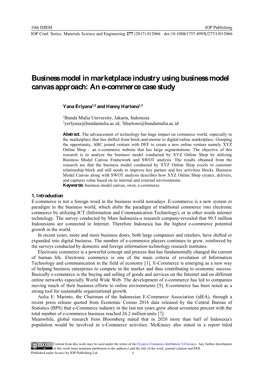 这一现象使印尼的一家大型移动服务提供商,PT ABC与外国公司PT DEY成立了一个开放的市场。”在本研究中,以下简称XYZ在线商店。XYZ网站是一个电子商务网站,它向潜在买家和卖家提供一个虚拟的网上商店,就像购物中心里的概念一样。潜在的卖家可以尽可能多地宣传自己的产品,扩大市场份额,而潜在的买家可以自由购买任何种类丰富的产品,享受卖家提供的折扣。因此,XYZ网上商店有C2C和B2C市场的概念。XYZ网上商店的发展每年都在持续增长。根据XYZ在线商店截至2017年6月的数据,XYZ在线商店已经拥有超过63000个卖家和800多万个产品,这些产品被划分为8个类别:电子产品/电脑、电子、时尚、美容和健康、儿童和婴儿、家庭花园、爱好和服务食品。此外,在2016年,XYZ在线商店是印度尼西亚唯一一家参与韩国项目销售的电子商务公司;韩国最大的购物节是与商务部、工业和能源部合作举办的,与韩国文化、体育和旅游部门合作。为了在激烈的商业竞争中成功地经营业务,XYZ Onlinshop决定按照既定的目标和目标建立正确的商业模式。业务模型将描述组织如何创建、交付和捕获价值的基本原理。