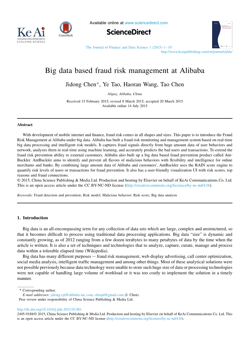 阿里巴巴基于大数据的欺诈风险管理外文翻译资料
