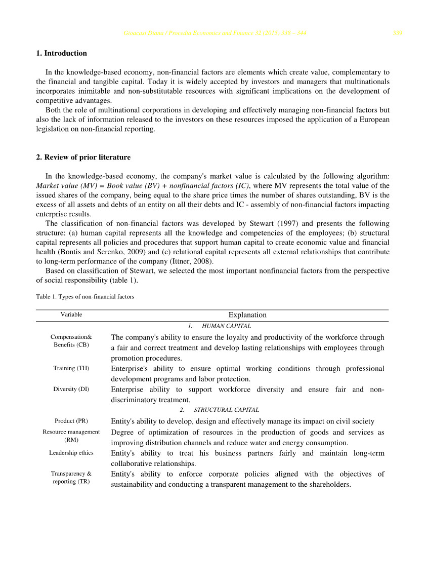 在知识经济中,非金融因素是创造价值的要素,是对金融和有形资本的补充。 今天,投资者和管理人员普遍认为,跨国公司融合了独特和不可替代的资源,对发展竞争优势具有重大影响。