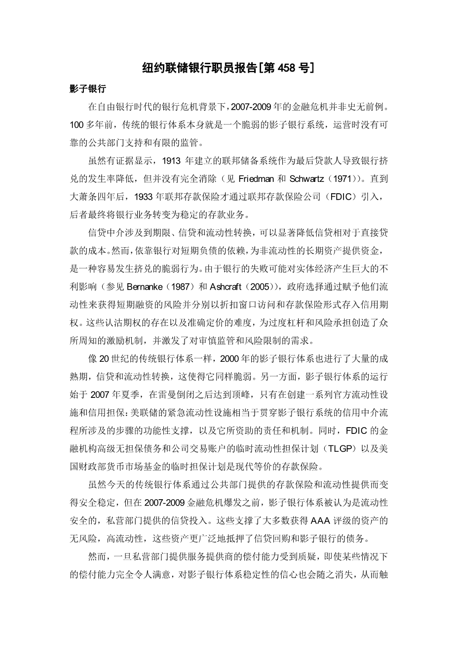 Federal Reserve Bank of New York Staff Reports [No.458]