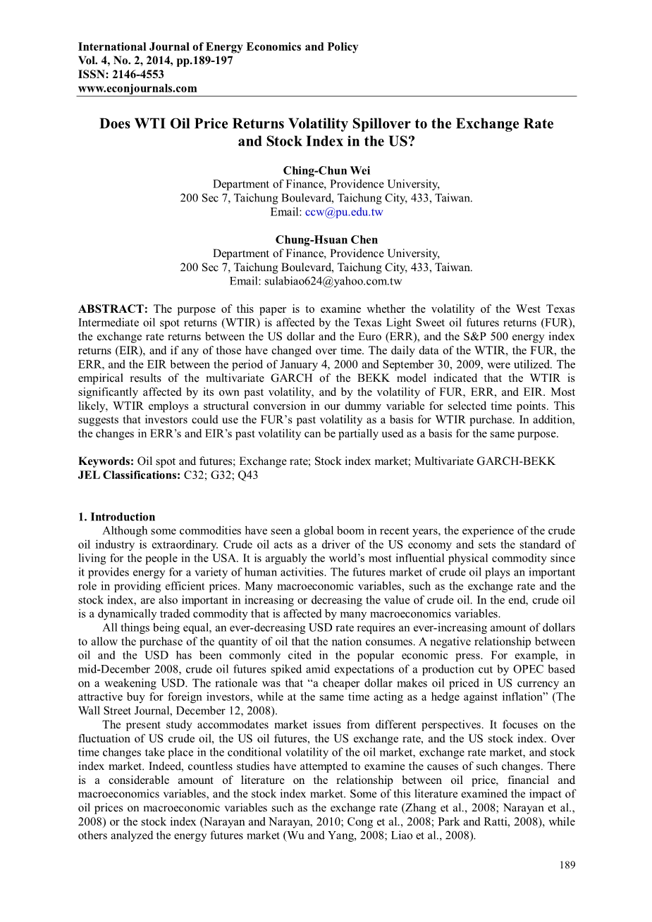 WTI原油价格收益波动会对美国汇率及股指产生溢出效应吗?外文翻译资料