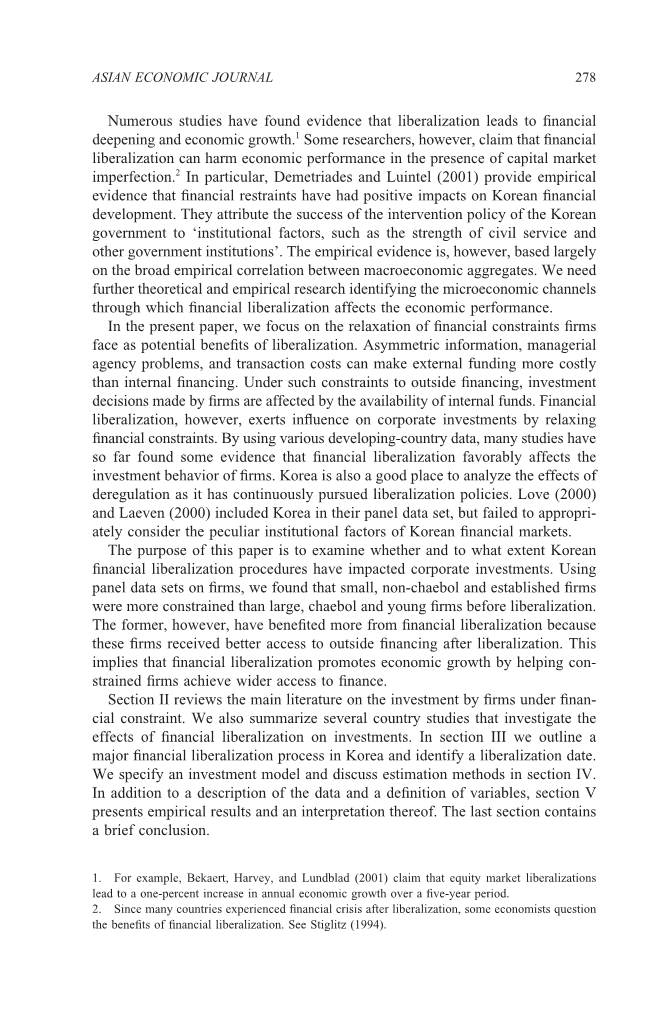 题 目 金融自由化与企业投资:来自韩国企业数据的分析