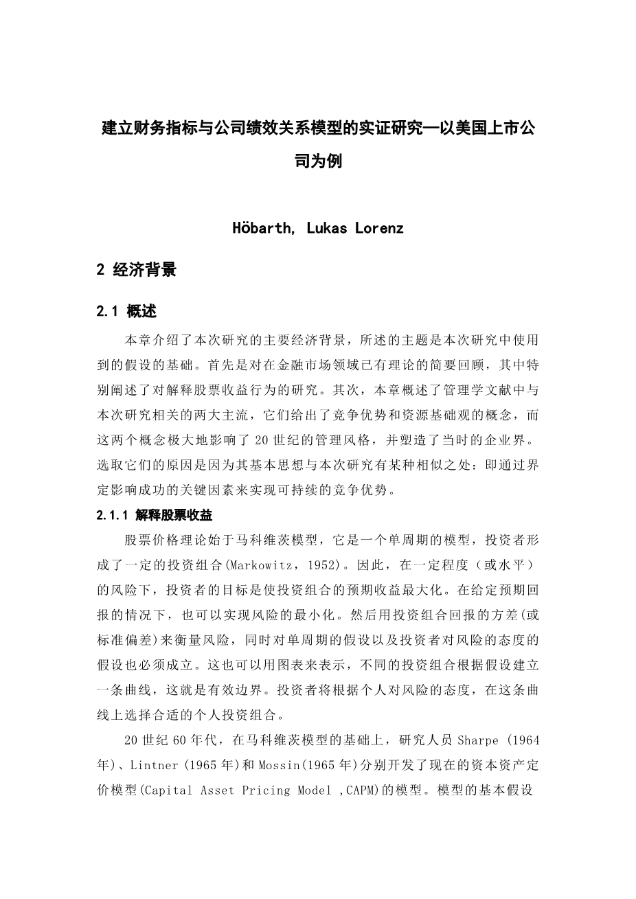 建立财务指标与公司绩效关系模型的实证研究- -以美国上市公 司为例外文翻译资料 2023-02-11 13:19:51 英语原文共 146 页,剩余内容已隐藏,支付完成后下载完整资料 英语译文共 13 页,剩余内容已隐藏,支付完成后下载完整资料 资料编号:[413488],资料为PDF文档或Word文档,PDF文档可免费转换为Word 原文和译文剩余内容已隐藏,您需要先支付 30元 才能查看原文和译文全部内容!立即支付 发小红书推广免费获取该资料资格。点击链接进入获取推广文案即可: Ai一键组稿 | 降AI率 | 降重复率 | 论文一键排版 PREVIOUS NEXT 您可能感兴趣的文章 数字普惠金融能否缩小中国城乡收入差距?——区域城乡收入结构透视外文翻译资料 政府补贴和研发投入对中国新能源上市公司财务竞争力影响的实证研究外文翻译资料 商业银行风险管理探讨外文翻译资料 如何应对房地产繁荣:国家经验的教训外文翻译资料 试论时代互联网金融风险的防范外文翻译资料 金融创新与风险共担外文翻译资料 资本和劳动分配结构和中国的经济增长外文翻译资料 绿色金融对中国经济高质量发展的影响研究一一机制与实证分析外文翻译资料 数字经济、普惠金融与包容性增长外文翻译资料 风险投资的绿色化与我国实体产业的绿色创新外文翻译资料