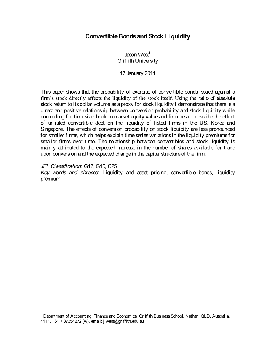 Key words and phrases: Liquidity and asset pricing, convertible bonds, liquidity premium.