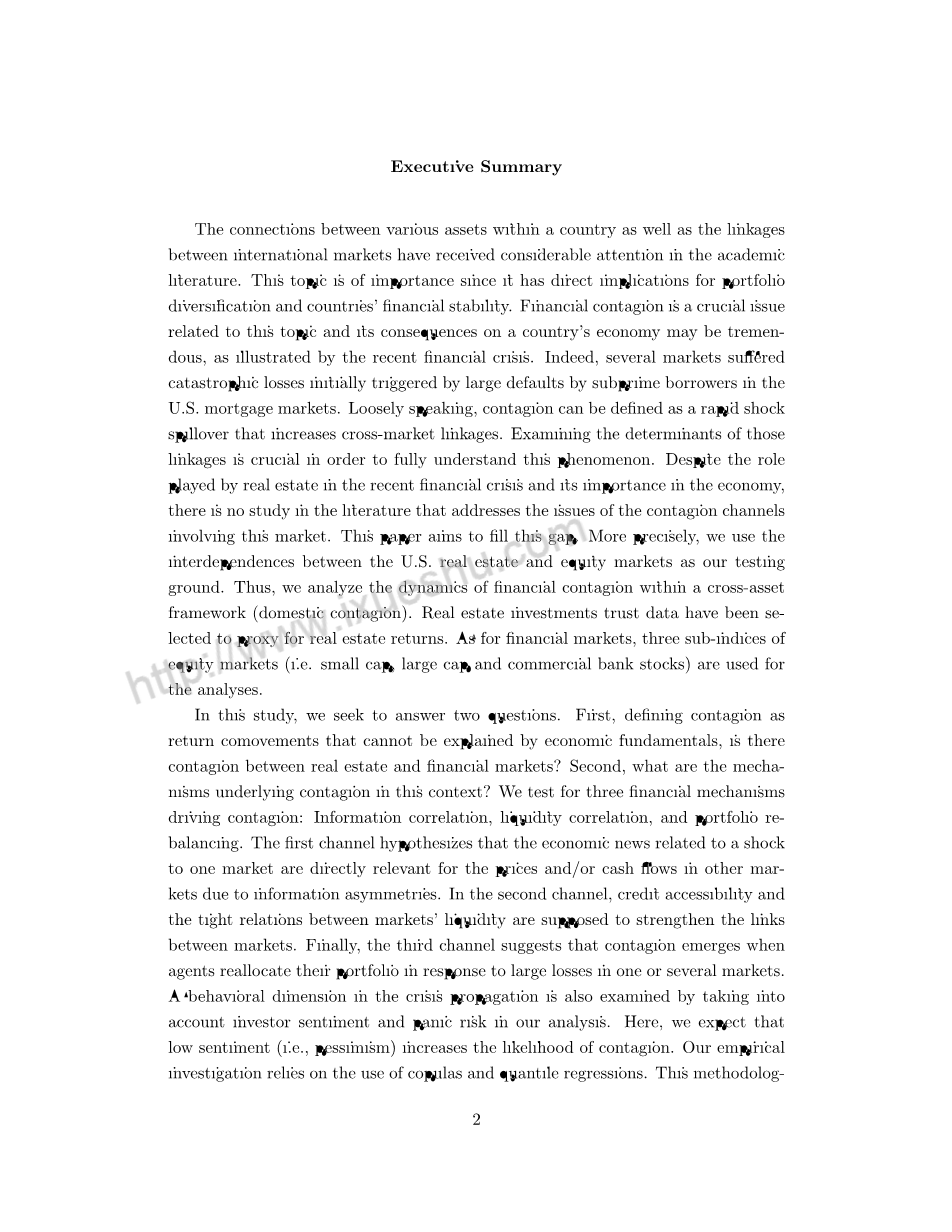 如果传染似乎在许多市场上普遍存在,那么自然的研究流将是对跨市场冲击传播潜在渠道的分析。这个主题对于寻求对冲市场低迷的投资者和旨在限制这种紧张时期后果的政策制定者来说非常重要。深入了解驱动传染的机制将有助于做出更适当的决策并提供更有针对性的干预措施。据我们所知,尚未开展任何研究来研究涉及房地产和金融市场的传染渠道。鉴于房地产在近期金融危机中扮演的角色及其在经济中的重要性,我们认为填补这一差距非常重要。