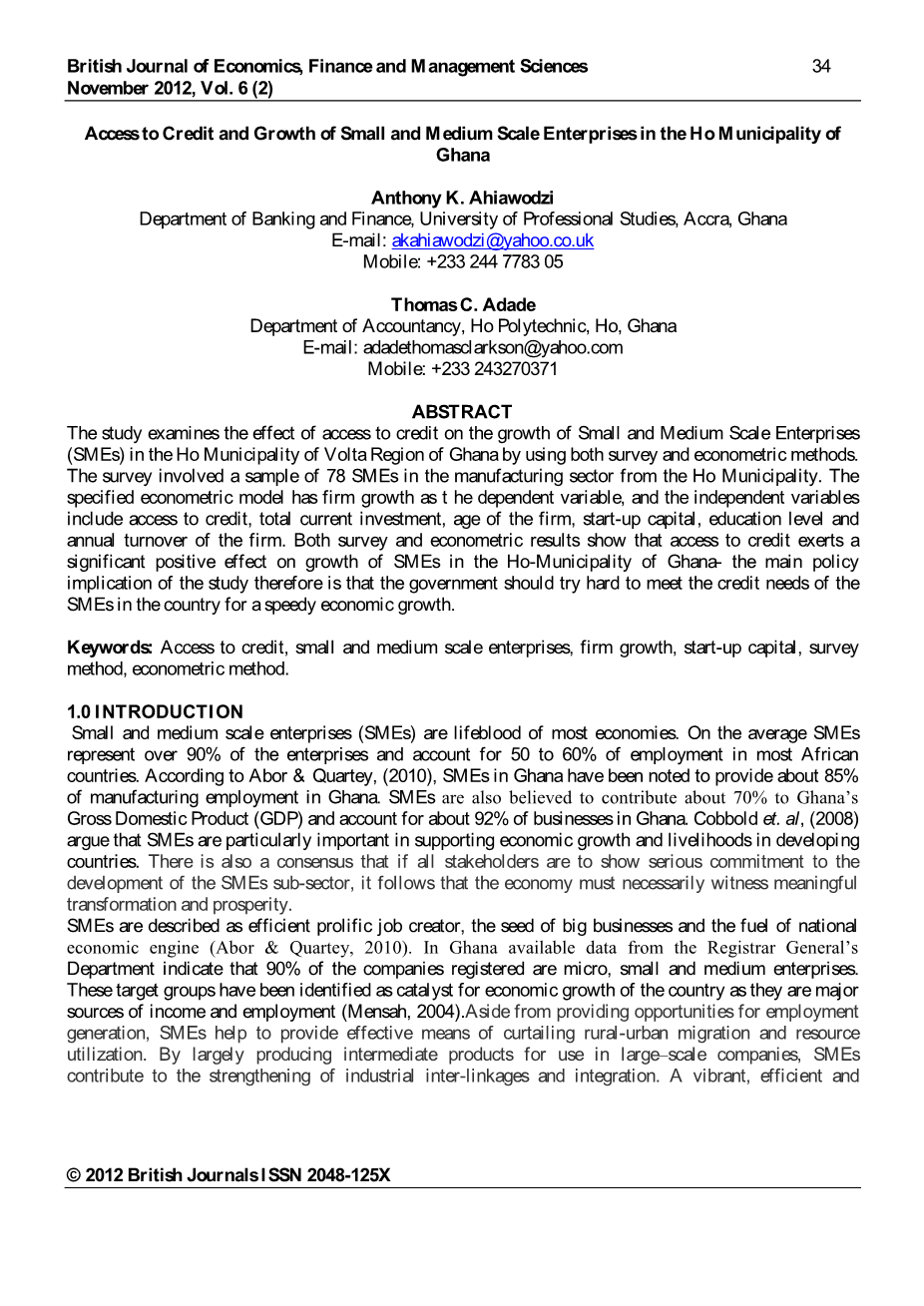 加纳Ho市中小企业信贷获取与增长外文翻译资料