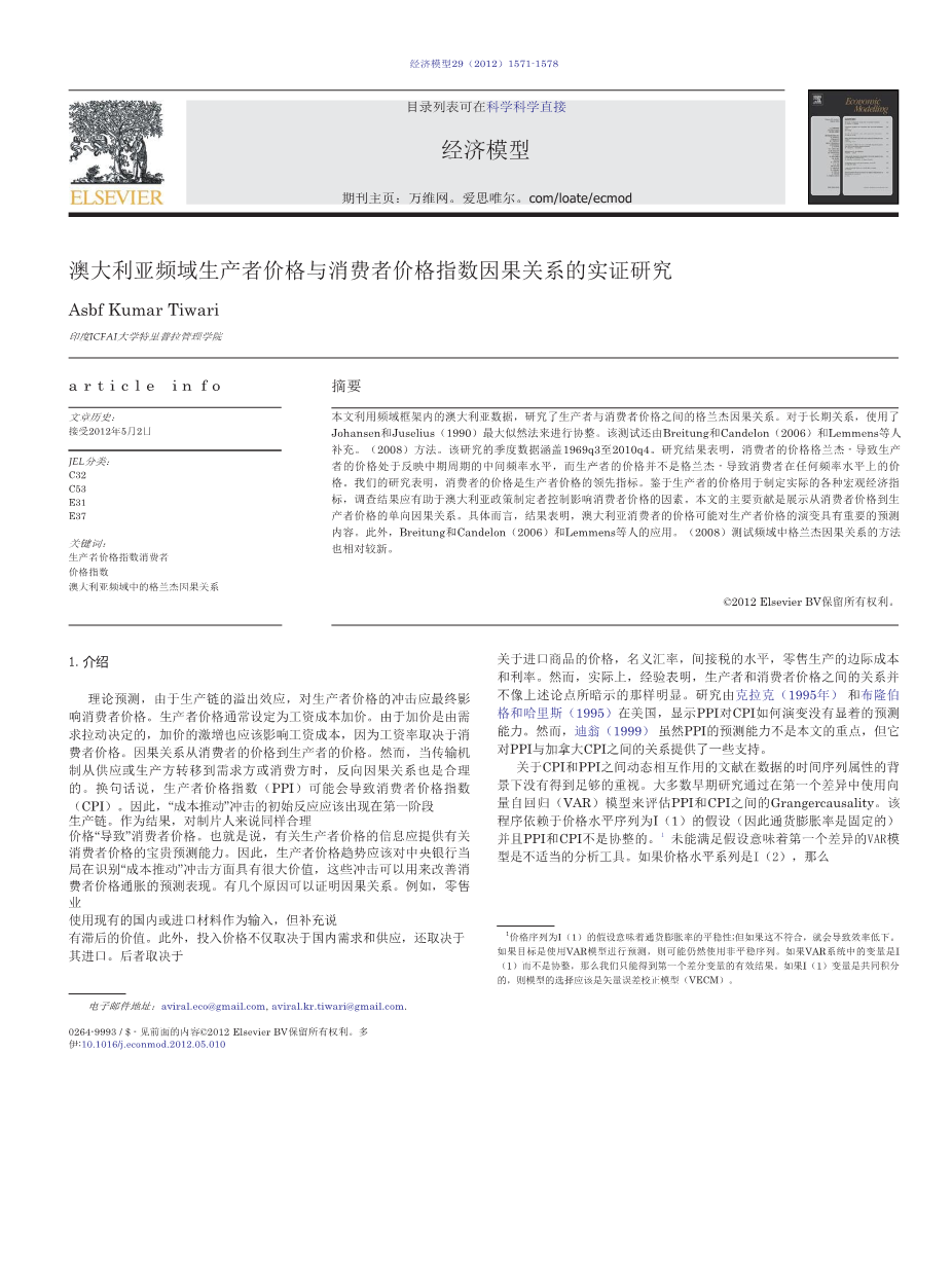我国CPI与PPI的波动特征与传导关系研究外文翻译资料
