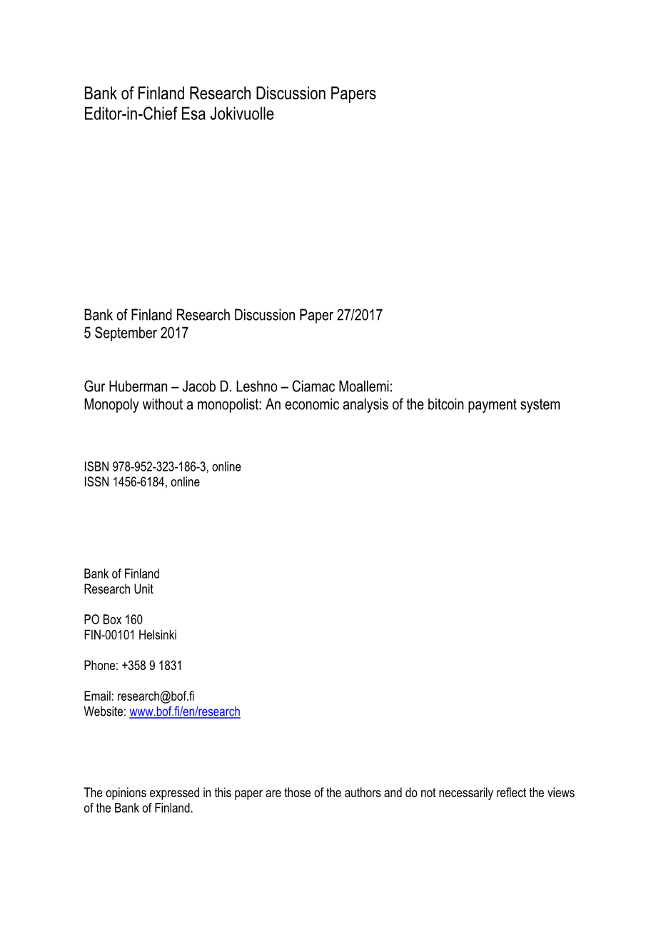 没有垄断者的垄断:比特币支付系统的经济分析外文翻译资料