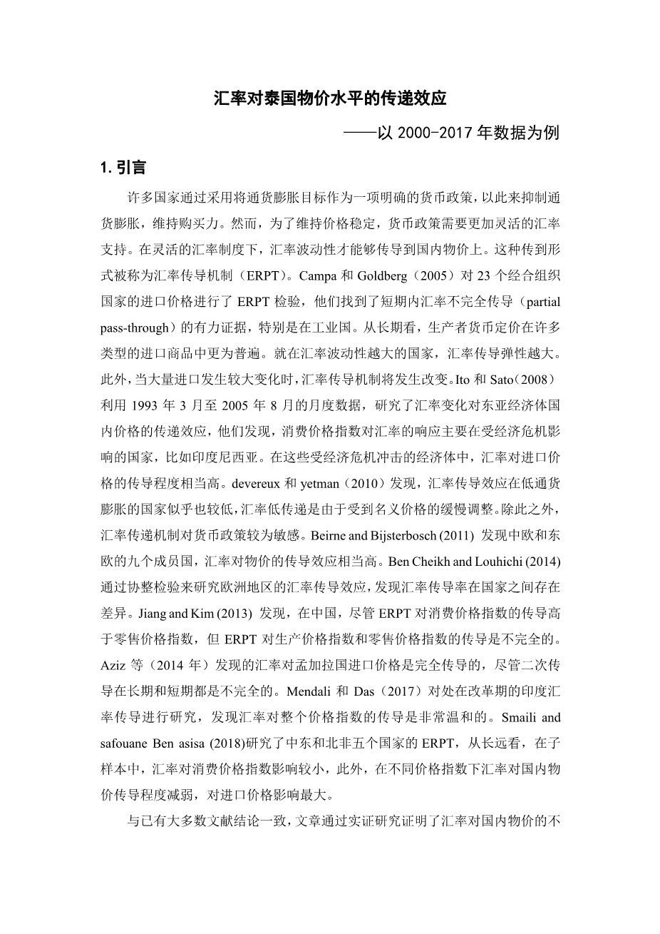 人民币汇率与国内物价水平波动相关性实证研究外文翻译资料