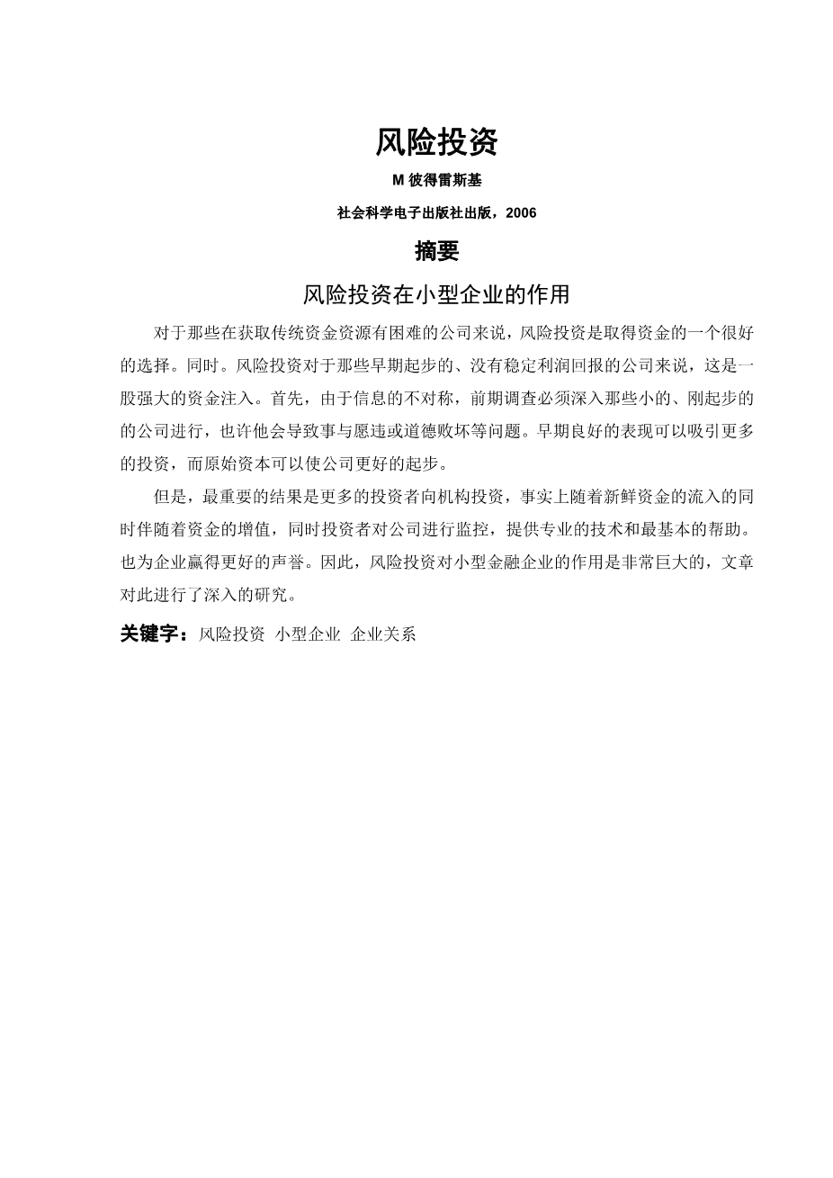 新三板交易制度及投资策略研究外文翻译资料 2022-03-23 20:18:57 英语原文共 17 页,剩余内容已隐藏,支付完成后下载完整资料 英语译文共 10 页,剩余内容已隐藏,支付完成后下载完整资料资料编号:[486016],资料为PDF文档或Word文档,PDF文档可免费转换为Word 原文和译文剩余内容已隐藏,您需要先支付 30元 才能查看原文和译文全部内容!立即支付 发小红书推广免费获取该资料资格。点击链接进入获取推广文案即可: Ai一键组稿 | 降AI率 | 降重复率 | 论文一键排版 PREVIOUS NEXT 您可能感兴趣的文章 数字普惠金融能否缩小中国城乡收入差距?——区域城乡收入结构透视外文翻译资料 政府补贴和研发投入对中国新能源上市公司财务竞争力影响的实证研究外文翻译资料 商业银行风险管理探讨外文翻译资料 如何应对房地产繁荣:国家经验的教训外文翻译资料 试论时代互联网金融风险的防范外文翻译资料 金融创新与风险共担外文翻译资料 资本和劳动分配结构和中国的经济增长外文翻译资料 绿色金融对中国经济高质量发展的影响研究一一机制与实证分析外文翻译资料 数字经济、普惠金融与包容性增长外文翻译资料 风险投资的绿色化与我国实体产业的绿色创新外文翻译资料