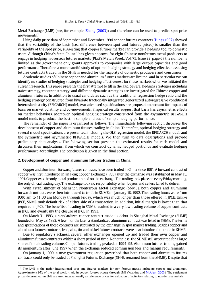沪铜价格分析及最优套保率估计外文翻译资料 2022-03-24 22:35:44 英语原文共 16 页,剩余内容已隐藏,支付完成后下载完整资料 英语译文共 12 页,剩余内容已隐藏,支付完成后下载完整资料资料编号:[485237],资料为PDF文档或Word文档,PDF文档可免费转换为Word 原文和译文剩余内容已隐藏,您需要先支付 30元 才能查看原文和译文全部内容!立即支付 发小红书推广免费获取该资料资格。点击链接进入获取推广文案即可: Ai一键组稿 | 降AI率 | 降重复率 | 论文一键排版 PREVIOUS NEXT 您可能感兴趣的文章 数字普惠金融能否缩小中国城乡收入差距?——区域城乡收入结构透视外文翻译资料 政府补贴和研发投入对中国新能源上市公司财务竞争力影响的实证研究外文翻译资料 商业银行风险管理探讨外文翻译资料 如何应对房地产繁荣:国家经验的教训外文翻译资料 试论时代互联网金融风险的防范外文翻译资料 金融创新与风险共担外文翻译资料 资本和劳动分配结构和中国的经济增长外文翻译资料 绿色金融对中国经济高质量发展的影响研究一一机制与实证分析外文翻译资料 数字经济、普惠金融与包容性增长外文翻译资料 风险投资的绿色化与我国实体产业的绿色创新外文翻译资料