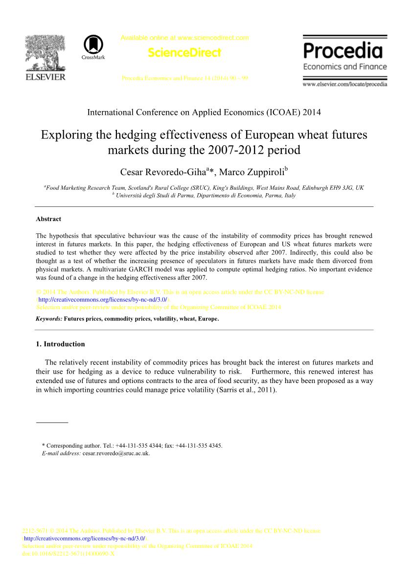 投机行为是大宗商品价格不稳定的原因,这一假设给期货市场带来了新的兴趣。在本文中,研究了欧洲和美国的小麦期货市场的套期保值效率,以检验其是否受到2007年以后观察到的价格不稳定的影响。间接地,这也被认为是对投机者在期货市场的日益增多是否会使他们脱离实体市场的考验。应用多元GARCH模型计算最优套期保值比率,没有发现2007年以后套期保值效应发生变化的重要证据。