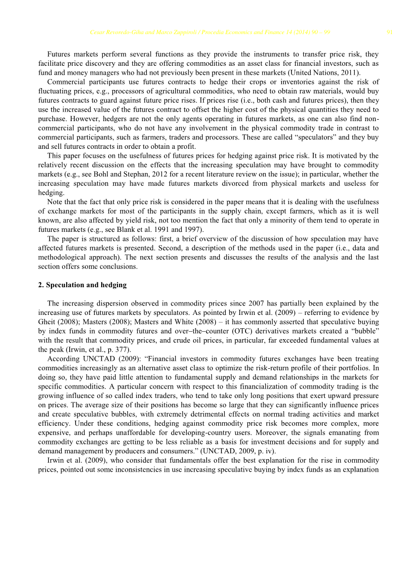 和斯蒂芬的2012年关于该问题的最新文献综述); 特别是日益增长的投机行为是否可能会使期货市场与实体市场脱钩,并且对其进行套期保值也是无济于事的。