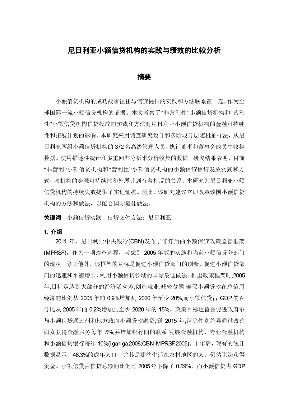 Keywords Microfinance Practice, credit delivery methods, Nigeria