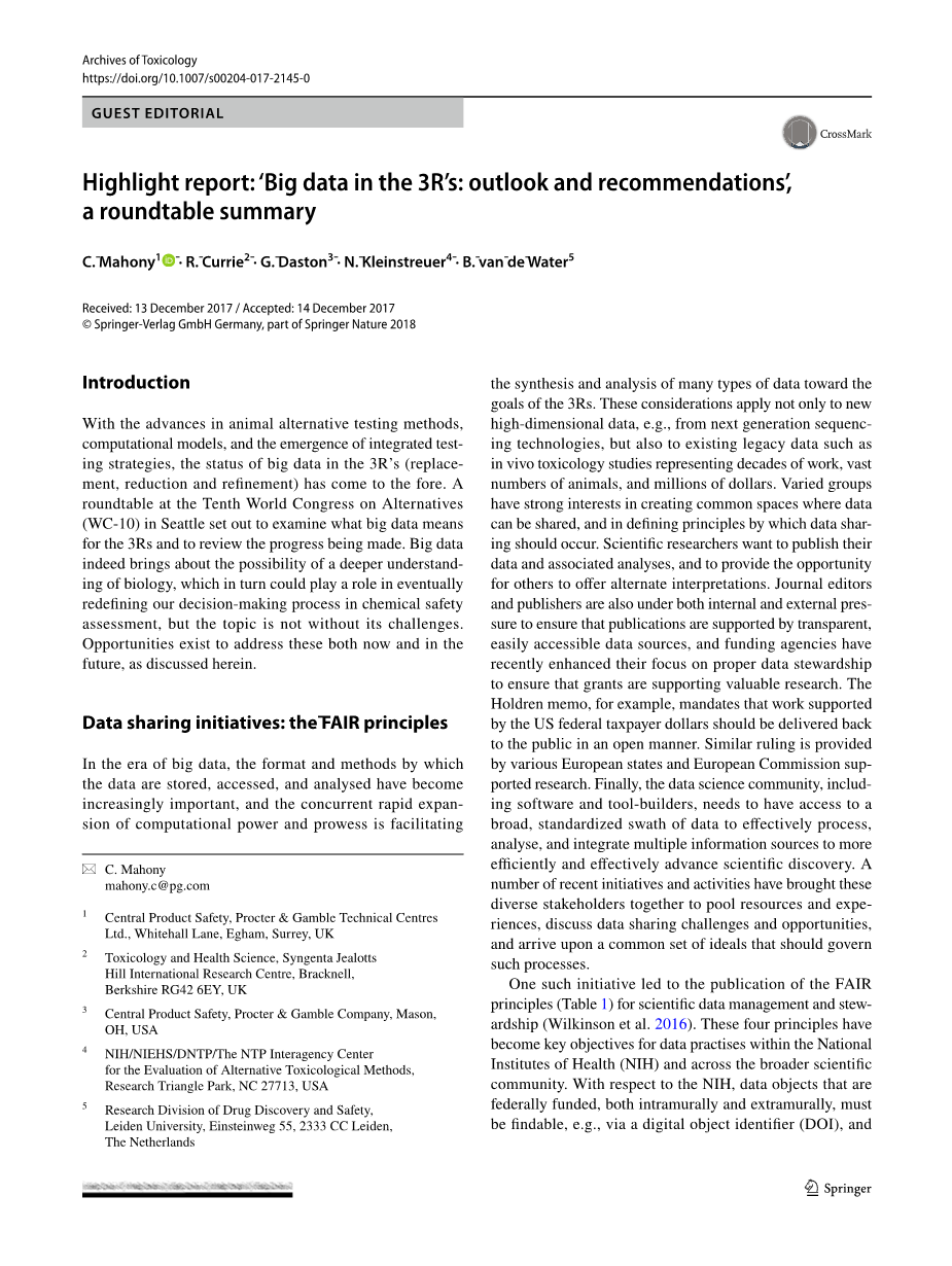 在大数据时代,数据存储、访问和分析的格式和方法变得越来越重要,同时计算能力和实力的迅速扩张也在促进多种类型数据的综合与分析朝着3Rs的目标。这些考虑不仅适用于新的数据如来自下一代测序技术的高维数据,还包括现有的遗留数据如代表数十年工作的体内毒理学研究数据,广阔动物数量和数百万美元的相关数据。各种各样的团体在数据可以共享方面对创造数据共同空间和确定可以数据共享时应当遵守的原则有着强烈的兴趣。科学研究人员想发表他们的论文数据和相关分析并提供翻译机会给那些需要可替代的翻译文献的人员。为保证出版物得到透明,易于访问的数据源和资助机构最近加强了对正确数据管理的关注以确保赠款用来支持有价值的研究这三个方面,杂志编辑出版商也面临着内部和外部的压力。例如,Holdren备忘录要求:得到美国联邦纳税人美元支持的工作应以公开的方式向公众公开。类似的裁决应由欧洲各国和欧盟委员会提供并被支持研究。最后,包括软件和工具构建者在内的数据科学界需要有权限访问广泛的,标准化的数据库以有效地处理、分析和整合多种信息来源,从而有效地推进科学发现。最近的一些举措和活动将这些不同的利益相关者聚集在一起,他们进行资源和经验的汇合、讨论分享数据的挑战和机会,并在可以统治这个共同理想进程方面达成一致。