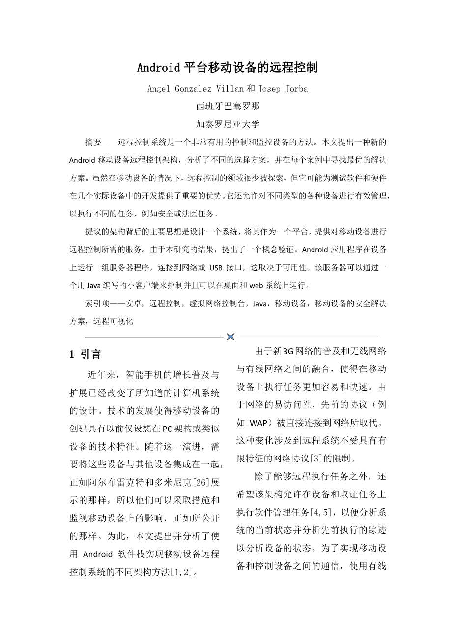 Android手机群控系统的设计与实现外文翻译资料 2022-05-01 22:01:28 英语原文共 10 页,剩余内容已隐藏,支付完成后下载完整资料 英语译文共 17 页,剩余内容已隐藏,支付完成后下载完整资料资料编号:[466041],资料为PDF文档或Word文档,PDF文档可免费转换为Word 原文和译文剩余内容已隐藏,您需要先支付 30元 才能查看原文和译文全部内容!立即支付 发小红书推广免费获取该资料资格。点击链接进入获取推广文案即可: Ai一键组稿 | 降AI率 | 降重复率 | 论文一键排版 PREVIOUS NEXT 您可能感兴趣的文章 管理信息系统外文翻译资料 老年人的营养和营养需求外文翻译资料 试卷自动生成系统的设计与实现外文翻译资料 JSP的技术发展历史外文翻译资料 微软.NET平台的介绍外文翻译资料 设置一个Servlet和JSP环境外文翻译资料 Java Servlet外文翻译资料 基于递归神经网络的会议识别语言建模外文翻译资料 基于社区结构的推荐算法和用户的信任外文翻译资料 边缘路径绑定:一种不太模糊的边缘绑定方法外文翻译资料