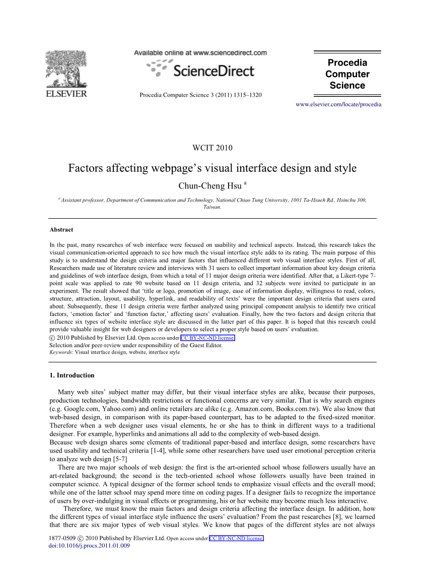 8. C. Hsu, et al., 'A study of the Visual elements and styles of web design,' presented at the Chinese Institute of 6th