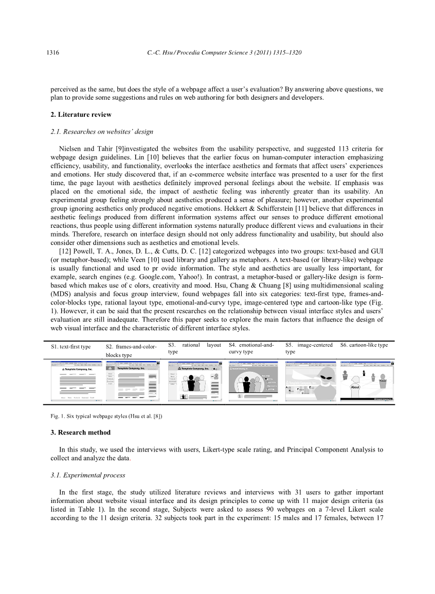 图1.六种典型的网页风格(Hsu et al。[8])