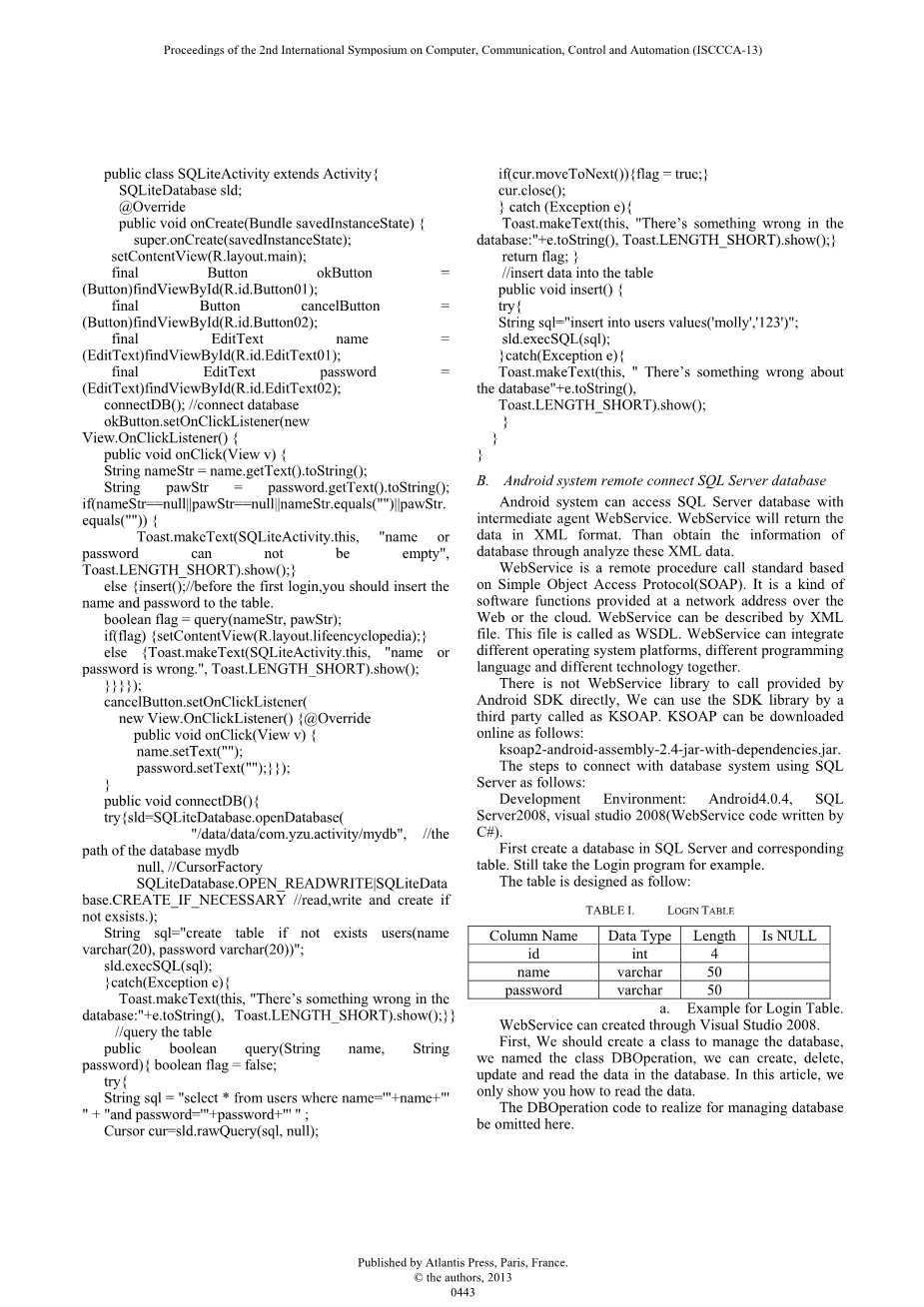下面从数据库连接的角度介绍Android系统的本地访问方法和远程访问方法的实现。以简单的登录应用程序来显示如何完成特定的数据库连接。