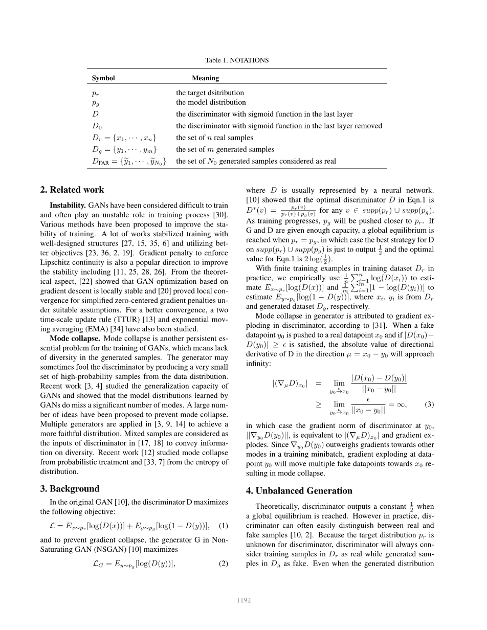 1. 我解释不平衡的产生过程 在GAN训练中分布,并且变得越来越多, 随着训练的进行,由于梯度导致的恶性循环问题的存在,训练变得更加严重爆炸。