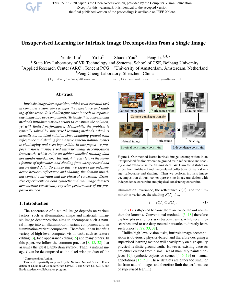 bull;所提出的方法优于现有的无监督方法,并在不同的内在图像基准上显示出与完全监督方法相当的结果。