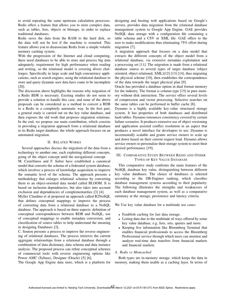 当您第一次查看数据库的性能时,内存处理是延迟的最终解决方案。这种将关系数据库迁移到键值数据库Redis的方法的诞生源于内存性能的提高。整个迁移是基于从关系数据库中提取数据并按照关系数据库与两个数据库通信的方法将其注入到键值数据库中。整个迁移过程是在不受人为因素干扰的情况下自动完成的,已经创建了一个原型,证明了这种方法的有效性。