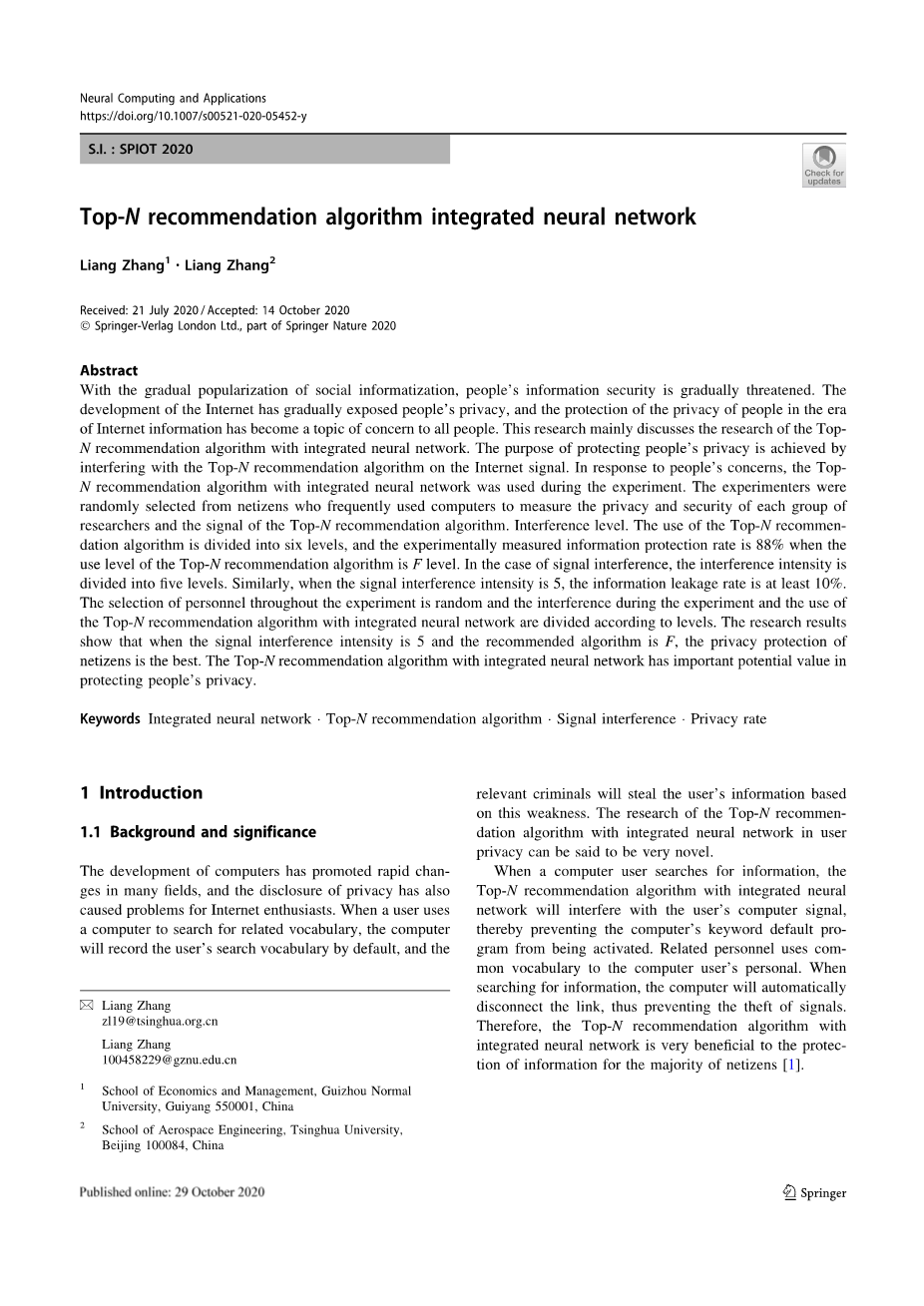 社会逐步信息化,人们的信息安全逐渐受到威胁。互联网的发展使人们的隐私逐渐暴露出来。在互联网信息时代,如何保护人们的隐私成为大家关注的话题。本研究主要讨论基于神经网络的Top- N推荐算法。研究通过对Top-N推荐算法利用的互联网信息的进行干扰和模糊,达到保护人们隐私的目的。实验样本从网民中随机抽取,对每组实验样本的隐私安全情况和Top-N推荐算法的效率进行测评。Top-N推荐算法的使用等级分为6个等级,当Top-N推荐算法的使用等级为F级时,实验测得的信息保护率为88%。在信号干扰的情况下,干扰强度分为5个级别,当Top-N推荐算法的使用级别为F级时,实验测得信息保护率为88%。同样,当信号干扰强度为5级时,信息泄露率至少为10%。整个实验过程中人员的选取是随机的,实验过程中的干扰和使用基于神经网络的Top-N推荐算法是按照级别划分的。研究结果表明,当信号干扰强度为5,推荐算法为F时,网民的隐私保护效果最好。带有基于神经网络的Top-N推荐算法在保护人们的隐私方面具有重要的潜在价值。