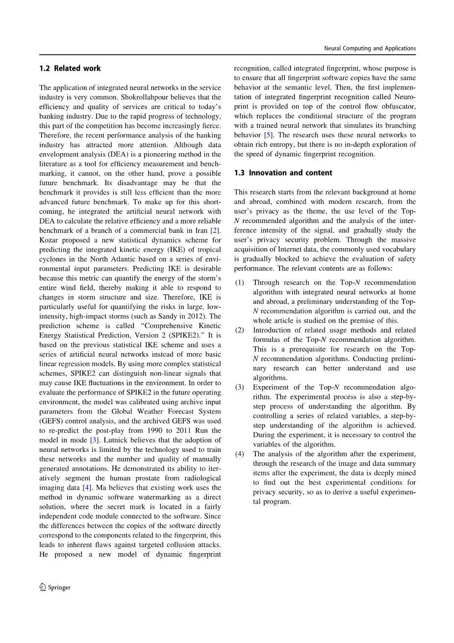 在服务行业中,综合神经网络的应用非常普遍。Shokrollahpour认为,服务的效率和质量对当今的银行业至关重要。由于科技的飞速发展,这部分的竞争越来越激烈。因此,近期银行业的绩效分析引起了更多人的关注。虽然,数据包络分析法(DEA)作为一种衡量效率和标识基准的工具,在文献中是一种开创性的方法,但在另一方面,它不能说明未来可能的基准。它的缺点可能是它所提供的基准仍然比更先进的未来的基准效率低。为了弥补这一不足,他将人工神经网络与DEA整合在一起,计算出伊朗某商业银行分行的相对效率和更可靠的基准[2]。Kozar提出了一种新的统计动力学方案,基于一系列环境输入参数,预测北大西洋热带气旋的综合动能(IKE)。预测综合动能是可取的,因为这一指标可以量化风暴整个风场的能量,从而使其能够对风暴结构和大小的变化做出反应。因此,IKE对于量化大型的、低强度、高影响的风暴(如2012年的桑迪)的风险特别有用。该预测方案称为综合动能统计预测第2版(SPIKE2)。它基于之前的统计IKE方案,使用了一系列的人工神经网络计算,而不是更基本的线性回归模型。通过使用更复杂的统计方案,SPIKE2可以区分环境中可能引起IKE波动的非线性信号。为了评估SPIKE2在未来运行环境中的性能,利用全球天气预报系统(GEFS)控制分析中的档案输入参数对模型进行了校准,并利用档案中的GEFS重新预测了1990年至2011年的运行模式[3]。Lutnick认为,神经网络的使用受限于训练这些网络的技术和人工生成的注释的数量和质量。他展示了其从放射成像数据中对人类前列腺进行间接分割的能力[4]。Ma认为,现有的工作将动态软件水印中的方法作为一种直接的解决方案,秘密标记位于与软件连接的一个相当独立的代码模块中。由于软件副本之间的差异直接对应着与指纹相关的组件,这就导致了针对定向合谋攻击的内在缺陷。他提出了一种新的动态指纹模型识别,称为集成指纹,其目的是确保所有指纹软件副本在语义层面具有相同的行为。然后,在控制流混淆器的基础上,提供了集成指纹识别的第一个实现,称为神经印,它用训练好的神经网络代替程序的条件结构,模拟其分支行为[5]。研究利用这些神经网络获得丰富的熵,但对动态指纹识别的速度没有进行深入的探讨。
