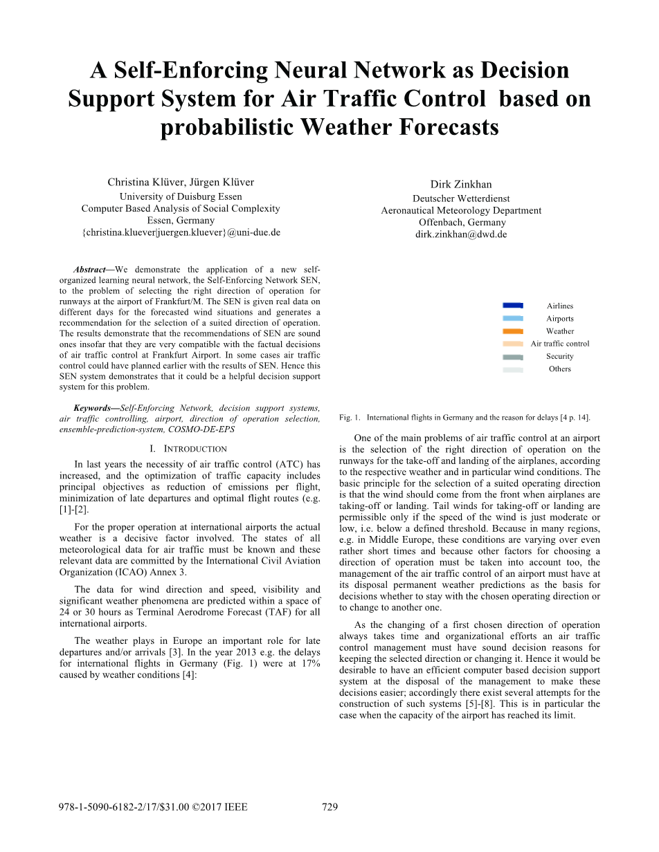 通过为欧洲主要枢纽之一的法兰克福机场提供气象服务的德国气象局(Deutscher Wetterdienst)的航空气象部门与CoBASC(基于计算机的社会复杂性分析)研究组的合作,我们决定开发一个相应的系统。为此,我们使用了一种新型的神经网络,即自我执行网络(SEN),是基于法兰克福机场几天来的天气预报风况的真实数据的合适决策支持系统的算法基础。