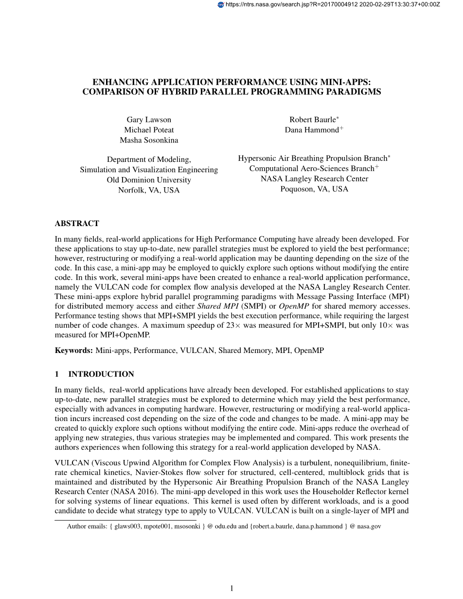 关键字:小应用程序,性能,VULCAN,共享内存,MPI,OpenMP