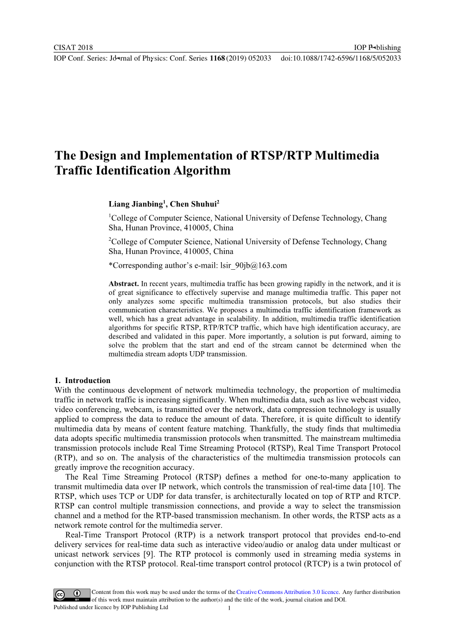 摘要。 近年来,多媒体在网络中迅速增长,有效地监督和管理多媒体流量变得十分重要。 本文不仅分析了一些特定的多媒体传输协议,而且研究了它们的通信特性。我们也从中提出了一种多媒体流量识别框架,它具有很强的可扩展性。 此外,本文还对具有较高识别精度的特定RTSP、RTP/RTCP流量的多媒体流量识别算法进行了描述和验证。 更重要的是,我们提出了一种解决方案,它旨在解决多媒体流采用UDP传输时,流的开始和结束无法确定的问题。
