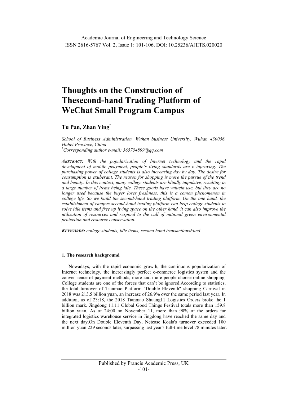 - 关键词:微信二手交易平台,高校应用,前景分析.吴媛.轻工技术.2018,34(03):113-114.