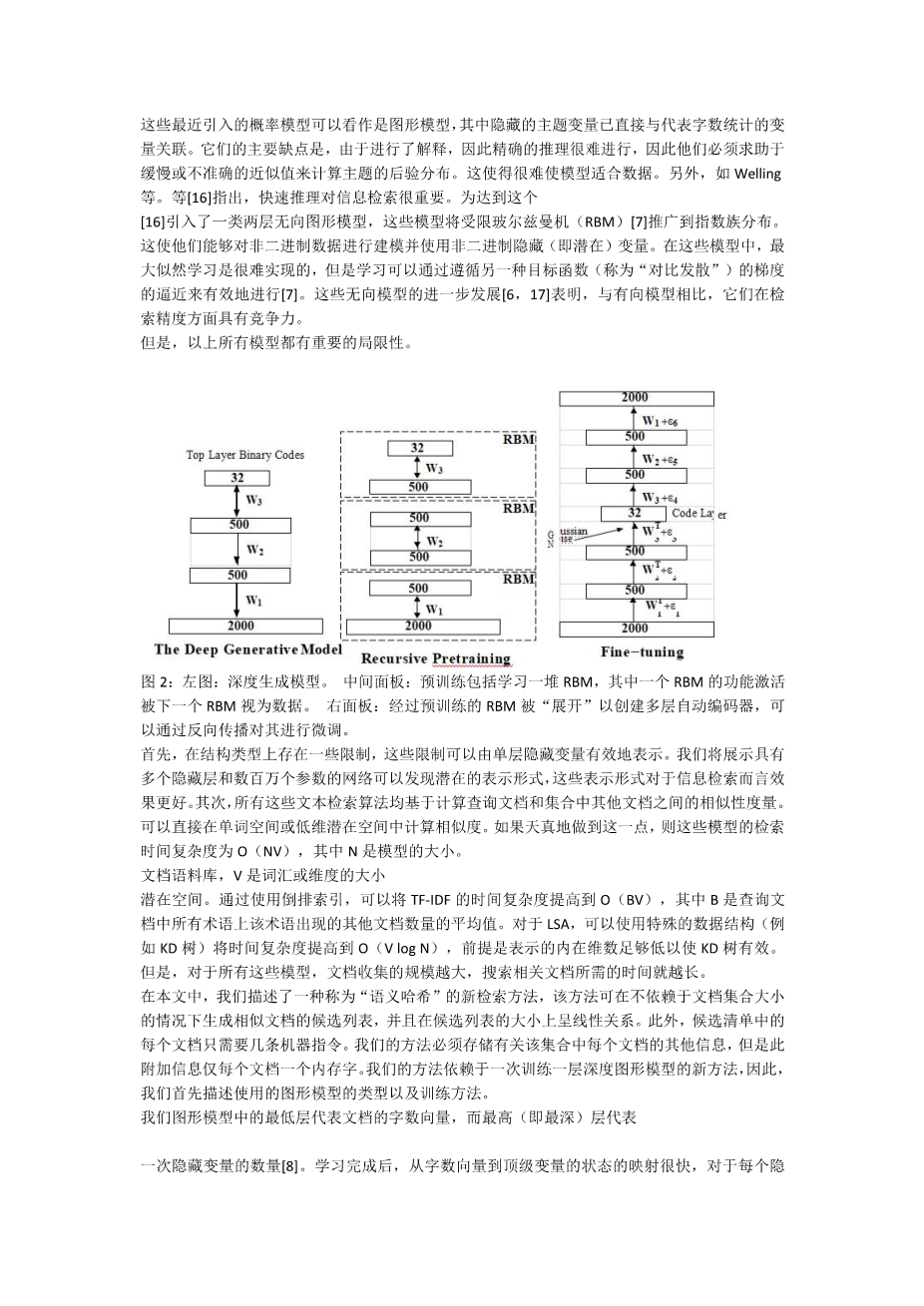 These recently introduced probabilistic models can be viewed as graphical models in which hidden topic variables have directed connections to variables that represent word-counts. Their major drawback is that exact inference is intractable due to explaining away, so they have to resort to slow or inaccurate approximations to compute the posterior distribution over topics. This makes it diffi- cult to fit the models to data. Also, as Welling et. al. point out, fast inference is important for information retrieval. To achieve this[16] introduce a class of two-layer undirected graphical models that generalize Restricted Boltzmann Machines (RBMrsquo;s) to expo- nential family distributions. This allows them to model non-binary data and to use non-binary hidden (i.e. latent) variables. Maxi- mum likelihood learning is intractable in these models, but learn- ing can be performed efficiently by following an approximation to the gradient of a different objective function called “contrastive di- vergence” . Several further developments of these undirected models show that they are competitive in terms of retrieval accuracy with their directed counterparts.